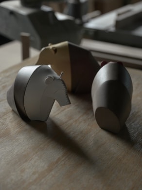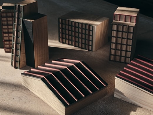 ‘COSONCO QS(コソンコクス)’は、カンディハウスとソメスサドルによって設立された、北海道・旭川と砂川で生まれたブランドです。それぞれの技巧を重ね、両社にとってこれまでになかったプロダクトを生み出しました。製造過程で発生する端材を積極的に取り入れ、玩具でも置物でもない、日常の傍で、そっと豊かな気持ちにさせてくれるアートオブジェです。木材と皮革。互いに雄大な北海道の大地を流れる石狩川流域で育まれた加工技術は、ここで1つになります。